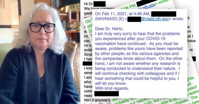 In a Feb. 11 email exchange (see below) between Hertz and the NIH and NIAID (the agency led by Dr. Anthony Fauci) just two months after COVID vaccines received Emergency Use Authorization, an official acknowledged other reactions like the ones Hertz experienced had been reported and agencies were aware of them.